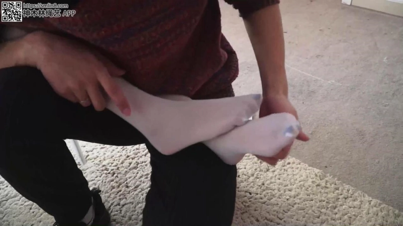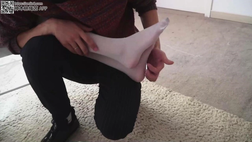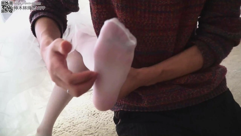 男子对七妹的不配合很不满意,要惩罚她。开始挠她的丝袜脚。