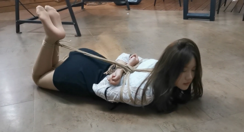 镜头一转,绒绒全身已近被捆好,双腿之间没有一点缝隙的紧紧合并在一起。绒绒尝试挣扎扭动了一下,差点摔倒。说道: