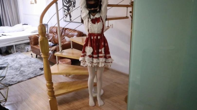 弱小可怜又无助的美少女,双手被吊着欺负,嘴巴被胶带封住,只能发出无助的声音