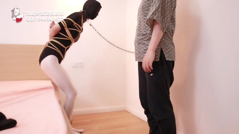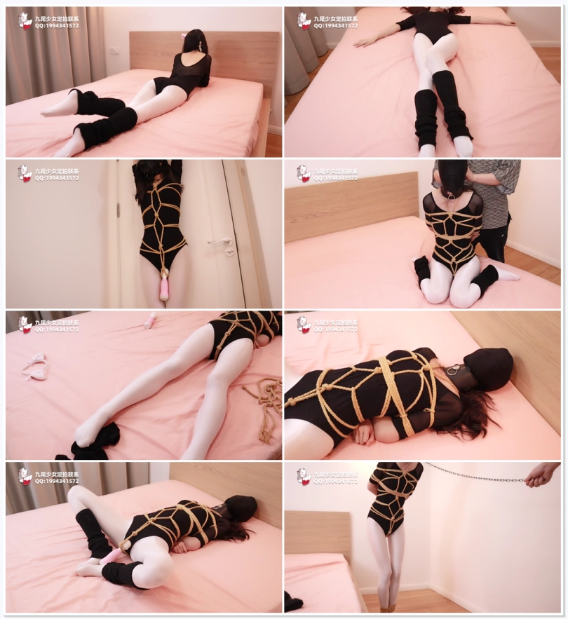 【九尾少女】【黑色形体服第一部】黑色形体服+油光白丝大长腿,龟甲缚多重捆绑+吊缚,头套封闭,玩具强制GC,最后在捆绑中被强制带走