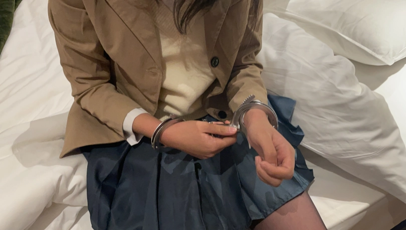 可爱的林念念穿上了麻衣学姐衣服,将双手伸出让我把她铐起来