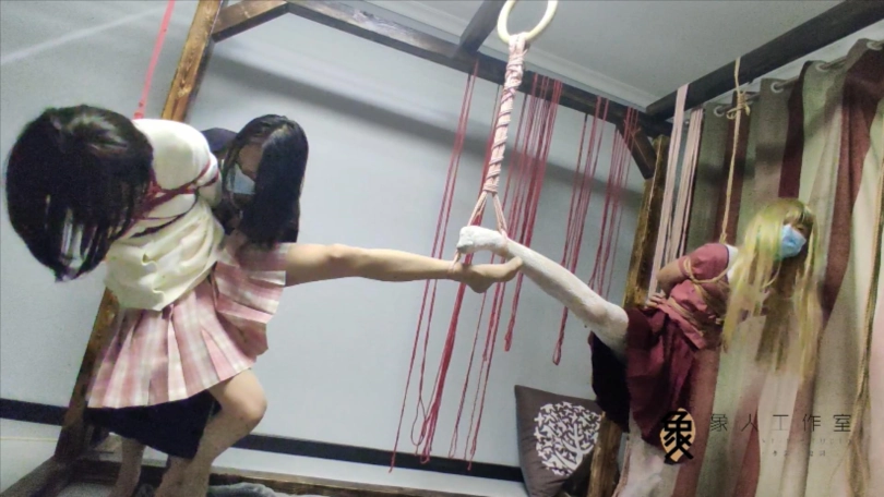 【象人】女S的双伪娘TJ,挠脚心SP(同时单脚吊缚,双倍快乐)(上)