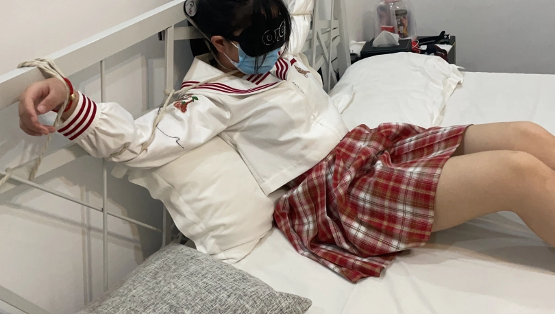 她很怕痒痒,但是却动不了只能发出笑声,自己差点也忍不住笑了