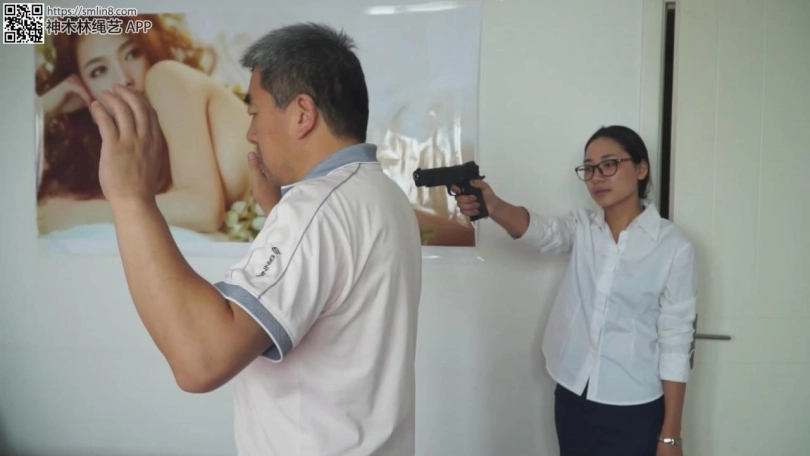 得救的王琳被解开了绳子,自己摘掉套头丝袜,取出塞口物,披上一件衣服。