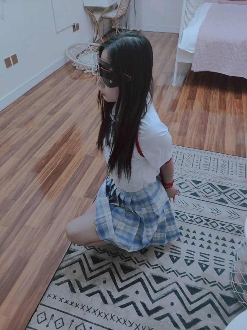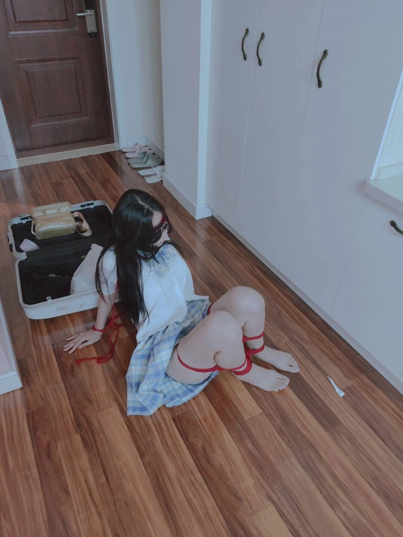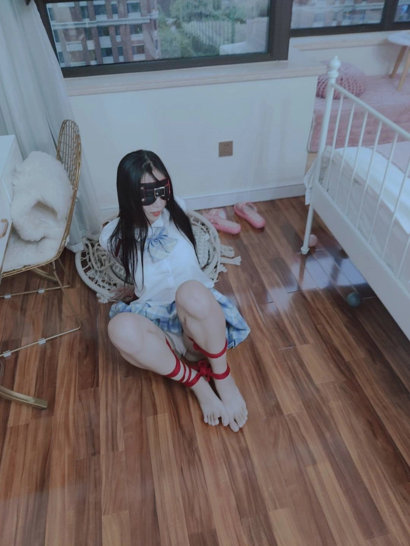 把可爱的长腿少女直臂紧缚,然后双腿分别折叠捆绑后把两只脚腕也绑在一起,可怜的小姐姐就变成了一团肉肉。然后要求她自行脱缚~
