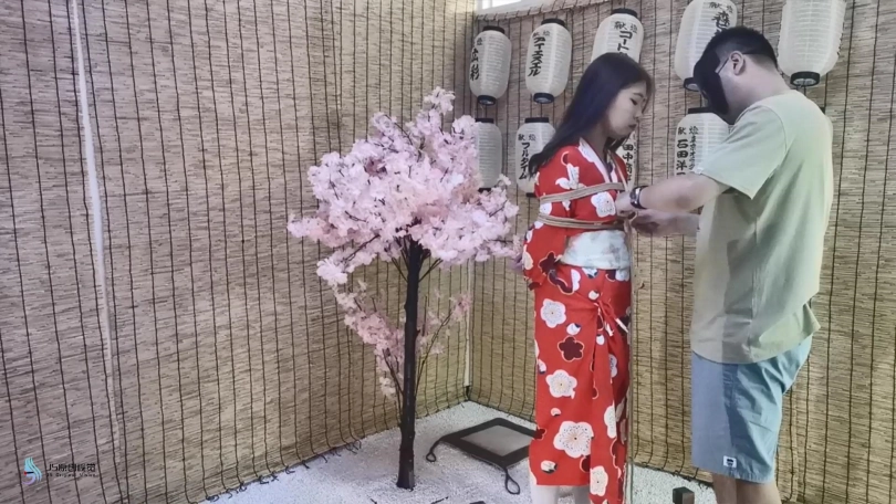 【JS】曼文 日式和服捆绑 白丝团缚 口球堵嘴 眼罩蒙眼