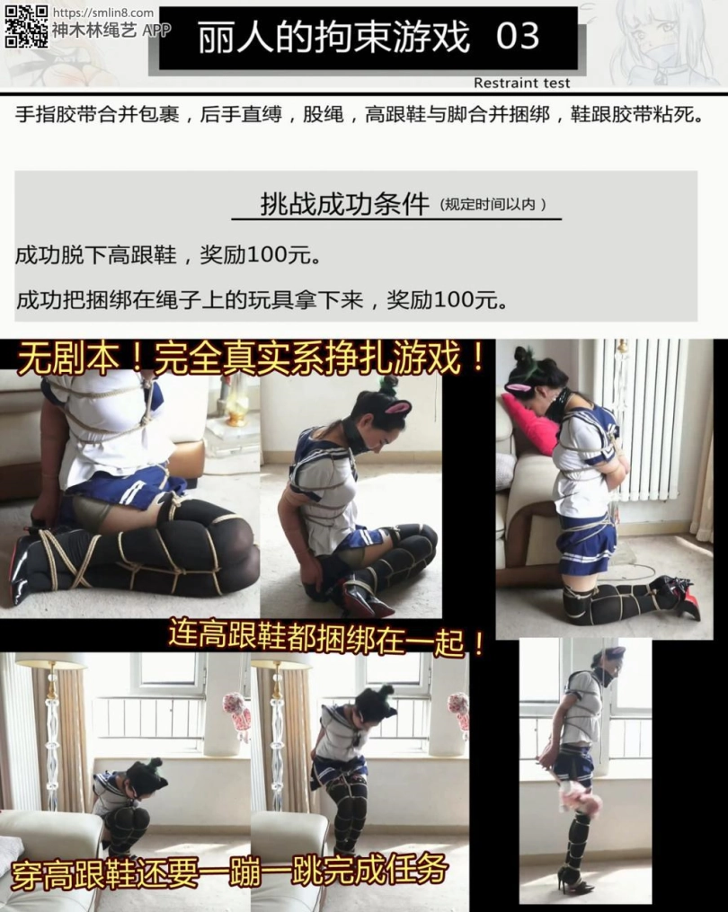 【逍遥】丽人的拘束游戏第3集!真实系美女挣扎游戏!黑丝高跟双腿捆绑的情况下,被迫蹦蹦跳跳完成各种游戏!水手服猫耳日式卡通黑丝!!超有趣的捆绑游戏!!