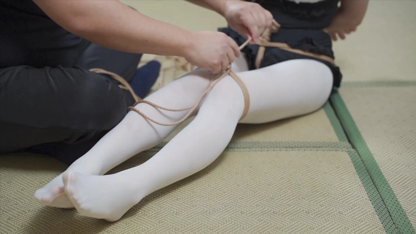 在膝盖,股绳,脚腕都留下绳圈,保证身体的重要部位都受力的驷马