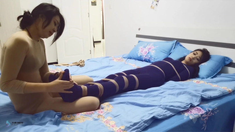 艾瑾萱不断的折磨挑逗着艾可,互相舔对方的脚。将艾可的嘴巴用丝袜塞住,用丝袜套头蒙眼。[不可描述]棒刺激,最后双双达到GC。。。