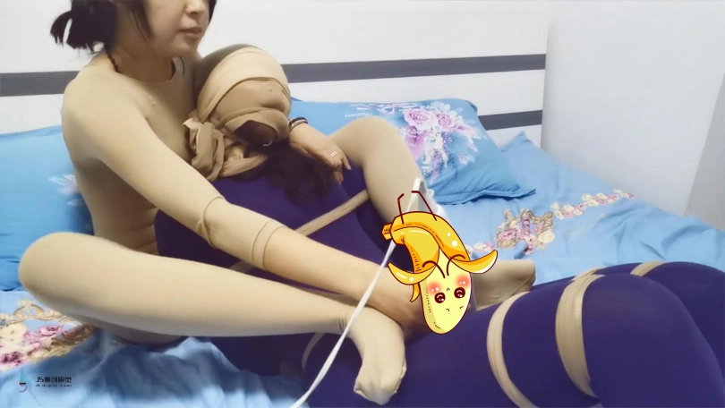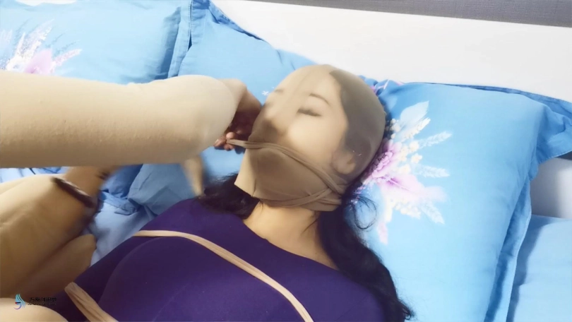 瑾萱:“你好吵呀,得把你嘴巴堵上”。说完,拿出丝袜塞进艾可的嘴里,又用一双连裤袜套在头上,并用丝袜蒙眼。