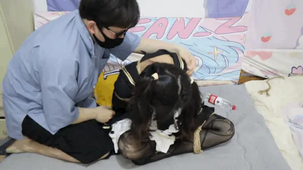 怀中小猫咪【荷仙少女】同样的捆绑姿势和同样的lolita暗黑式双马尾萌妹子,但是不同的欺负却能get到黑丝和白丝双重快乐