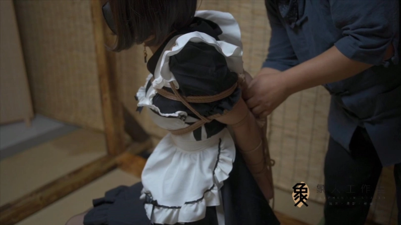 【象人】小0-黑丝女仆小高跟,直臂后手吊缚放置,本次把大腿和上半身连接,进一步缩小活动范围!