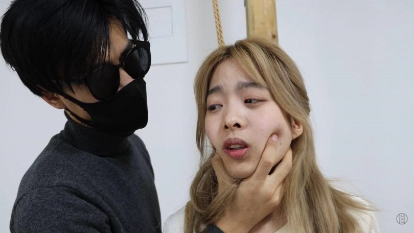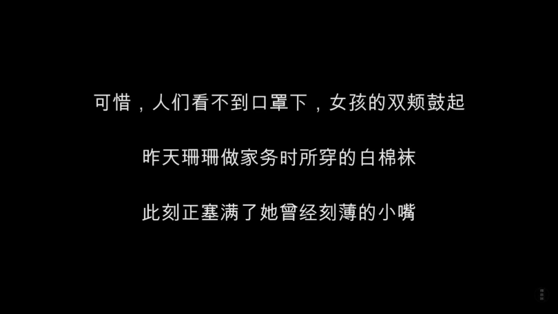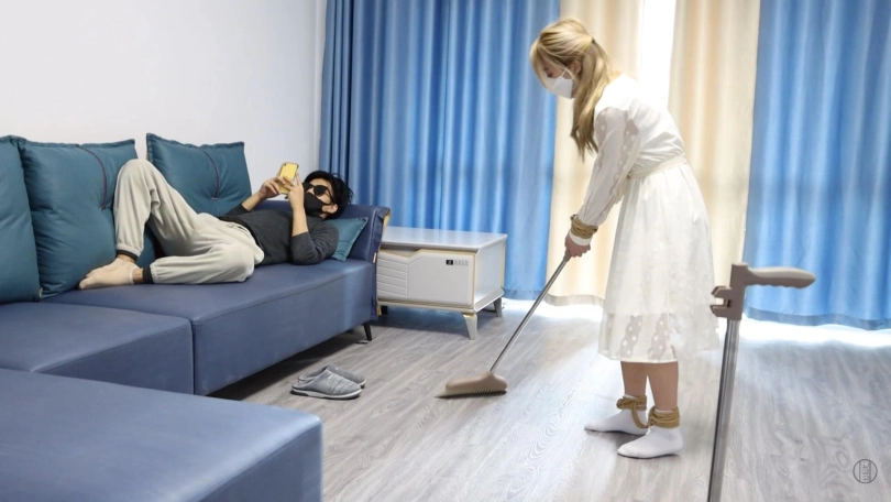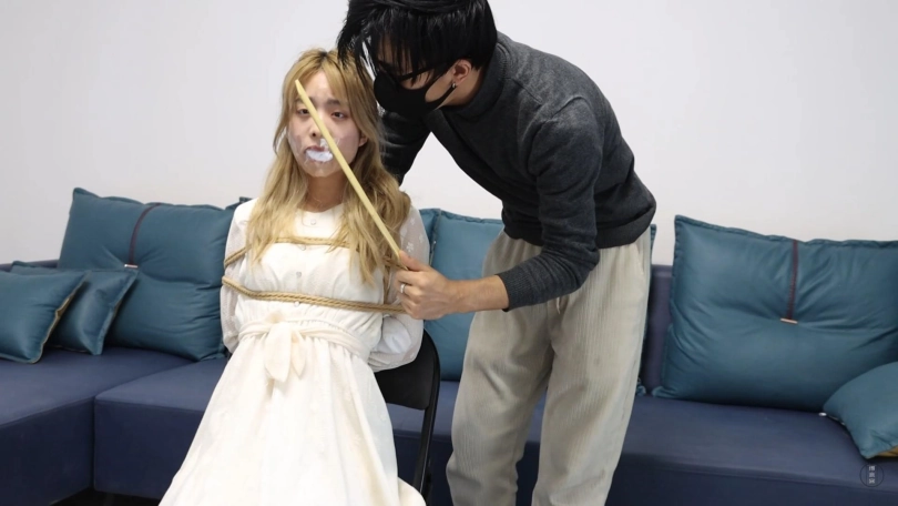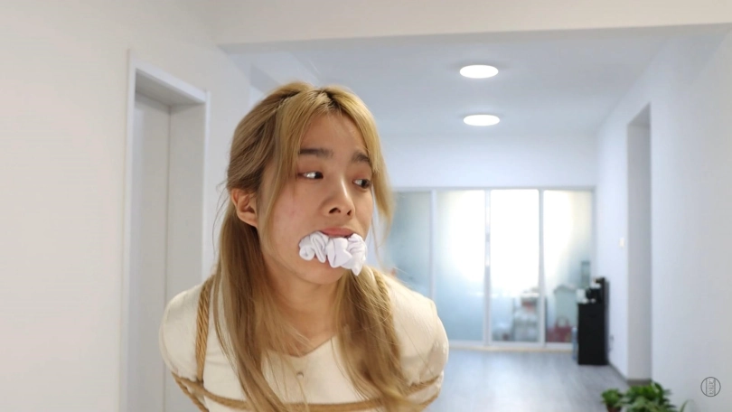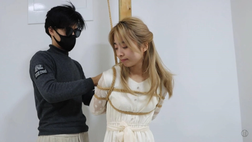 不多说,开始最后的剧情介绍:书接上回,被许斌的惩罚折服的珊珊无法违抗他,无论是什么样的命令,她都不得不照做。自然,许斌也不是那么好糊弄的,平时在家时珊珊便绳索缠身,几乎时时刻刻的被堵着嘴;而出门时,许斌便会命令珊珊用做家务时穿过的白棉袜塞进嘴里,用胶带封住后戴上口罩,这样珊珊便无法跟别人求助,甚至于每次出门时都会在裙底绑着股绳,令她根本无法集中注意力去逛街。