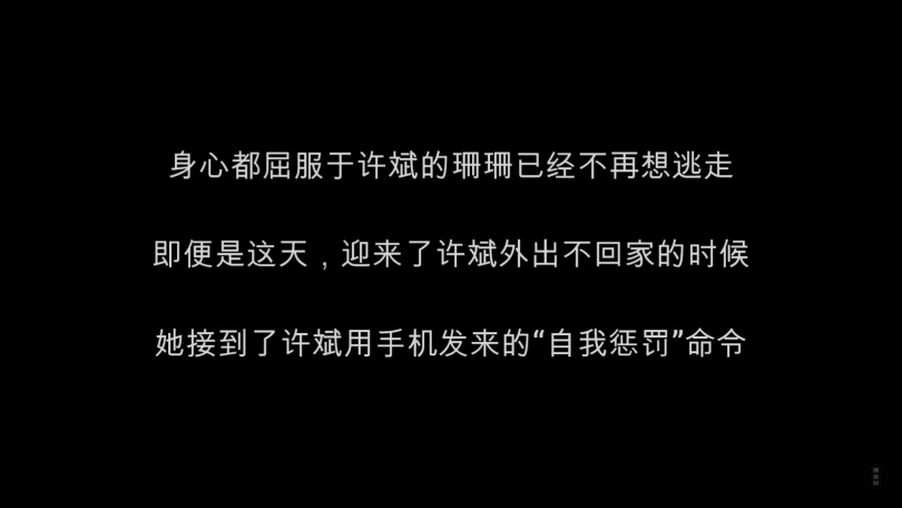 许斌自然不会相信她的这番说辞,无情的抽走了最后一本书。然而,珊珊的话倒也没有说谎,她确实会因为累了而休息,只不过,那是在自己房间自缚游戏过后罢了。许斌失去了耐心,将前些日子珊珊运动鞋中的脏白袜(小彩蛋)取出塞进了珊珊嘴里,随后用口球隔绝了她的诡辩。