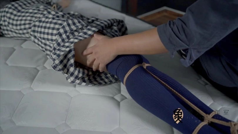 把轻语固定在铁艺床之后,脚并拢绑起来,然后就轻轻触她的脚心
