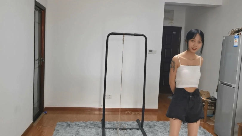 面容娇小、身材完美、特别爱笑的宝妹。模特长得很的显小,但是身材却一点也不显小,该瘦的地方瘦,有肉的地方有肉,穿上小吊带绳子一上身显得身材凹凸有致,极具诱惑力。给模特绑的是及其严厉的欧式直臂,妹子身体特别软绑的很紧也能接受,然后把宝妹双腿并拢折叠绑跪在地上,再从后边把手臂吊起来,前边再用绳子固定使她直不起身,就这样留着小妹妹一个人在房间里挣扎。