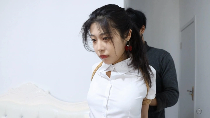 老板一边说要给米娅“奖励”,一边用绳子往米娅身上缠。米娅说:不是给我奖励吗?怎么又要绑了,老板说这就是你的奖励,米娅嘴上说不要奖励了,身体还是半推半就的。老板把米娅直臂驷马绑在了床上,还给米娅带上了一个大号的扣环,然后跟米娅说:我晚上有个饭局,你就在这好好享受吧,如果你能自己解开你就自己走吧,如果解不开就等我回来吧。于是米娅一个人在床上翻来覆去的挣扎,发现解不开之后只能呜呜呜的呼叫老板回来了。