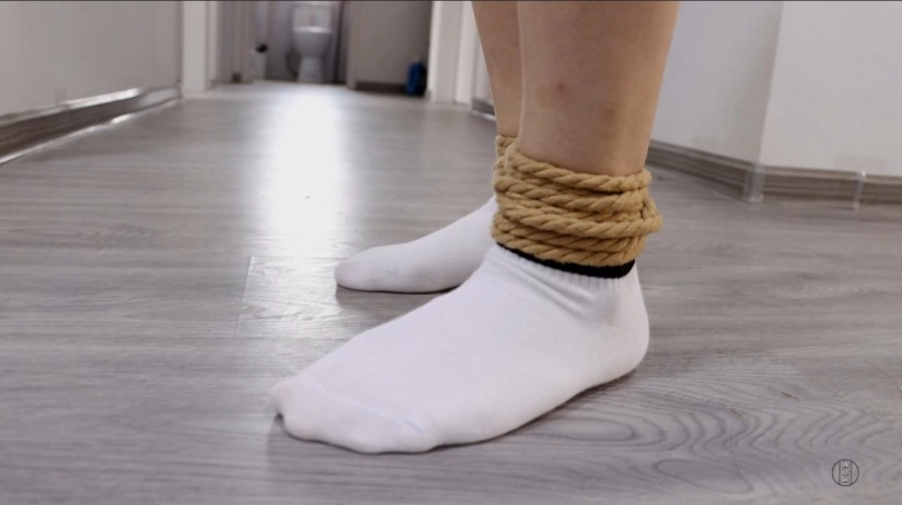 那些臭袜子便成了堵塞她污言秽语的有效刑具,被塞得满满的小嘴发出甜美的呻吟,被绳索捆绑的身躯更进一步的宣誓着她被奴从的身份,手指被铐上拇指铐,金属的质感令她更加屈服,穿着白棉袜的双脚被绑上绳镣,如古代的囚犯、又如待宰的动物一般被拉着行走,一切都那么屈辱,可胯间的股绳却让她不能轻易的陷入愤恨。