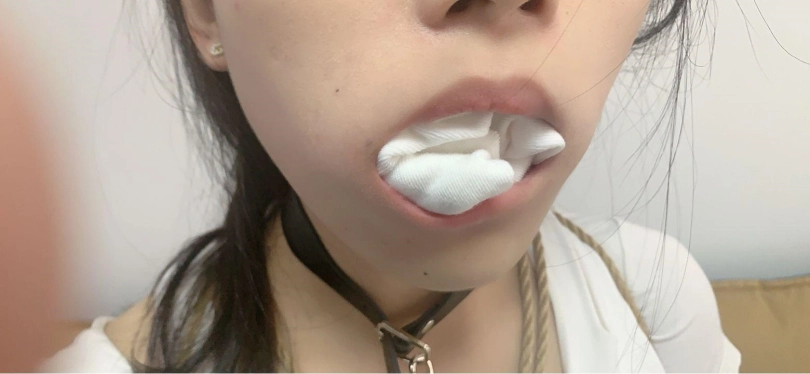 亮点:牛仔短裤,过膝白袜,四只船袜严密堵嘴,原味棉袜堵嘴,后手吊缚+拇指铐 项圈牵引,股绳牵引(跪姿爬行) 蒙眼堵嘴后跪缚+后手吊高放置