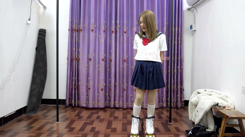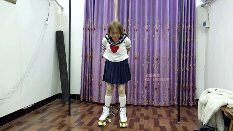 【子衿】晴晴水手服镣铐轮滑鞋,镣铐驷马拿钥匙解锁,五花口球吊缚,镣铐吊缚打屁股