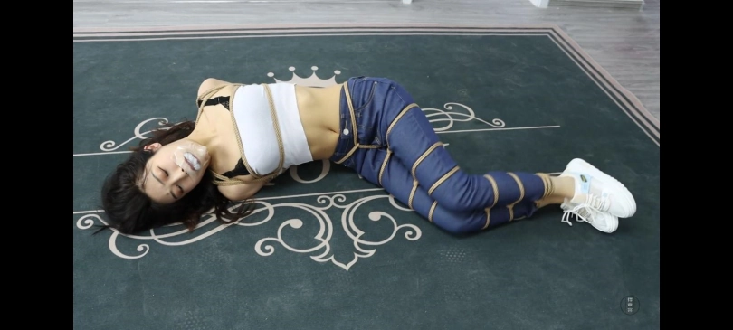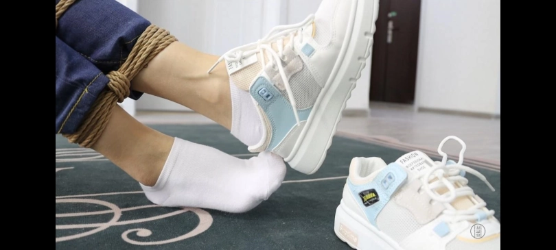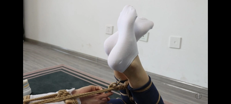 小丁将珊珊抓回来后将她绑成超紧的股绳驷马。捡回珊珊的鞋子让他闻了闻,然后开始玩弄珊珊的白袜脚,玩了一会之后将珊珊脚上的袜子脱下,替换掉珊珊嘴里的袜子,然后再用胶带封好。然后开始玩弄珊珊的裸足玩了一会小丁累了,给珊珊重新穿上了一双白袜后回屋休息。