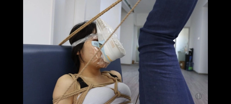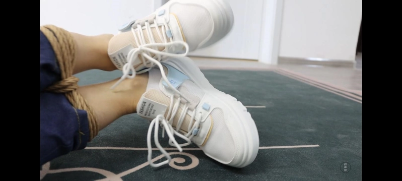 过了一会小丁睡醒了,看着地上挣扎的珊珊又想出了新的玩法,重新将她绑在了沙发上然后脱下了珊珊的一只袜子放在了珊珊的鞋子里,然后把这只鞋子用透明胶带绑到了珊珊的脸上,然后用小竹竿打珊珊的脚底,打的珊珊不断的哀嚎,打完之后把玩了一会珊珊的脚扬长而去,留珊珊一个人无助的挣扎。