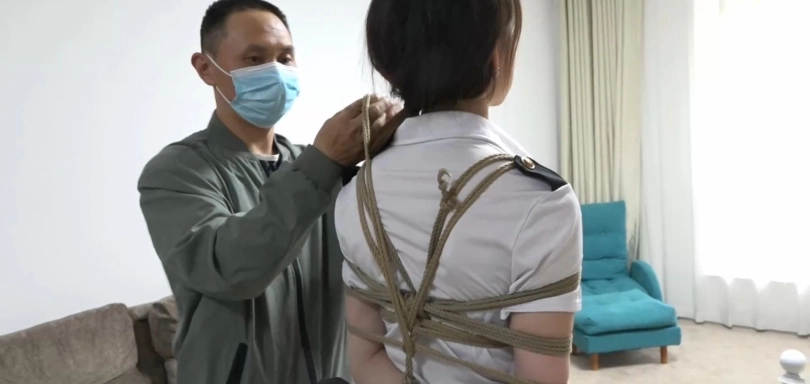 (第一部分的话算是完成了,对于我来说的话还是没想象中那么好,其实柳洋的角色我觉得是比较适合我小说中另一个角色的,那个角色的话是我最喜欢的一个角色,只是后面她的角色不是那么好拍摄,就当作女主吧,对于人物取名我是按照人物特征性格取名的,所以我感觉柳洋不太适合,但是没办法,其他模特更不适合了,索性第二部分有一个角色蛮符合新人物的,第二部分还在改动中)说一下剧情背景:正当刘小萌心中有着一丝欣喜的时候,这时匪徒回来了,看到刘小萌的小动作大怒:“被绑起来还不老实是吧,那就别怪我了。”随后匪徒为她解开身上的束缚,因为被捆的太久所以全身几乎使不上力,手脚都快麻了,就算身体的绳索被解开,也没有反抗的余地。(这里服装换了一下,因为还是那套的话可能会视觉疲劳,我觉得这双黑色高跟鞋不是很好看想让换双白色的,不过途中出现了点比较好笑的事情,没办法只能还是黑色高跟鞋了)匪徒先是用着纱布将她的手掌包裹起来,防止她自己解开绳索,然后将上身双腿都紧紧的捆绑起来。刘小萌再次失去了活动的权利,匪徒还不放心便扶着她趴在地上,随后拿起绳索穿过两腿中间绕过背后的绳索,将她的身体用力的往上一提。随着身体被匪徒往后一拉,刘小萌感觉一阵强烈的疼痛感从背后袭来,疼的她大声的叫了起来。直到她的双腿紧贴臀部,身体无法向后拉匪徒才肯罢休,很快就将她驷马捆绑起来。为了防止她大喊大叫,匪徒再次拿出一双丝袜慢慢塞入她的嘴中,贴上胶布以免将丝袜顶出口中。做完这些之后匪徒便离开了,离开的时候看了一眼手机,仿佛明白了什么,发出了诡异的微笑。而躺在客厅的刘小萌,一双丝袜填满了她的樱桃小嘴,让她无法发出一点声音。身体严密的捆绑让她十分难受,双手双脚被紧紧捆绑,不停的挣扎着想要让绳索得到一丝松动,但是绳索如同长在她身体一般,不管如何挣扎,丝毫没有松动的感觉。唯一能依靠的手指也被包裹起来,严密的捆绑让她感觉到了绝望。