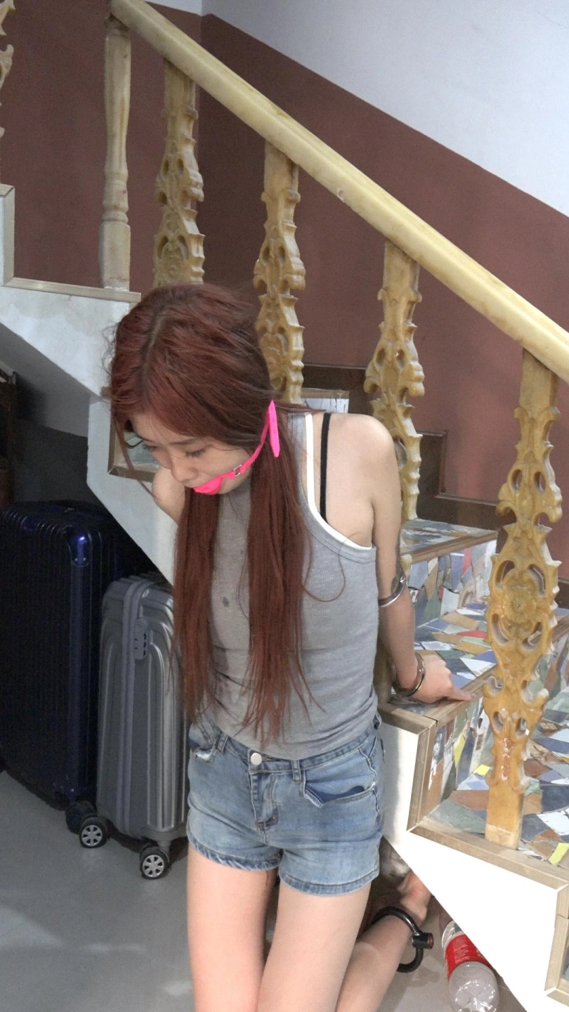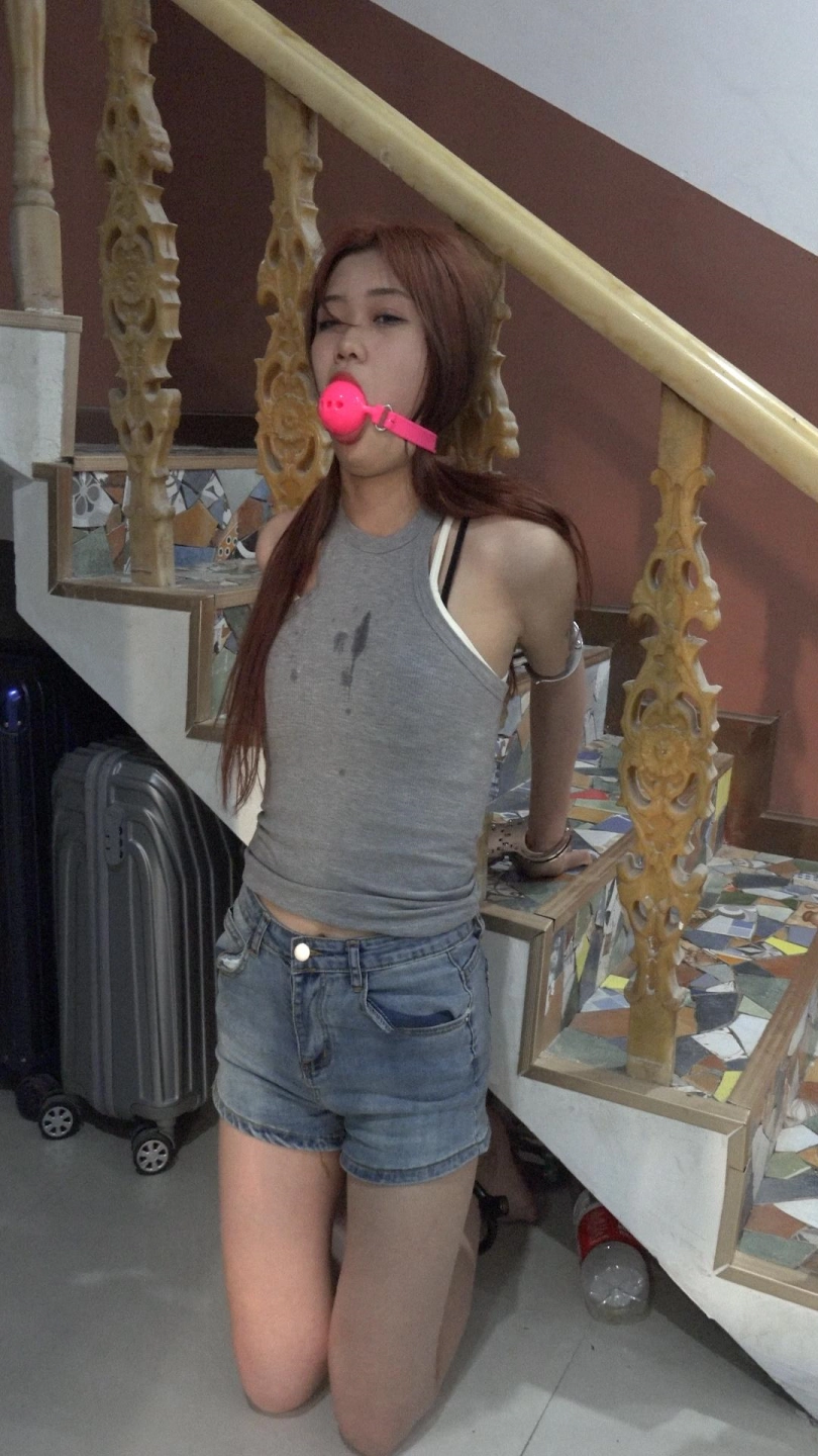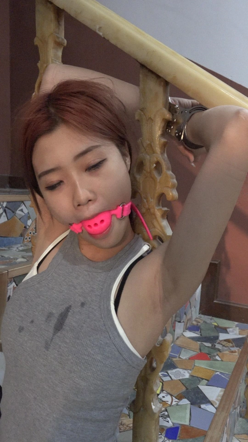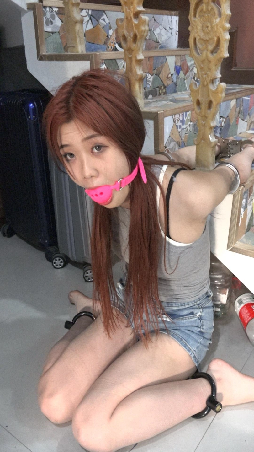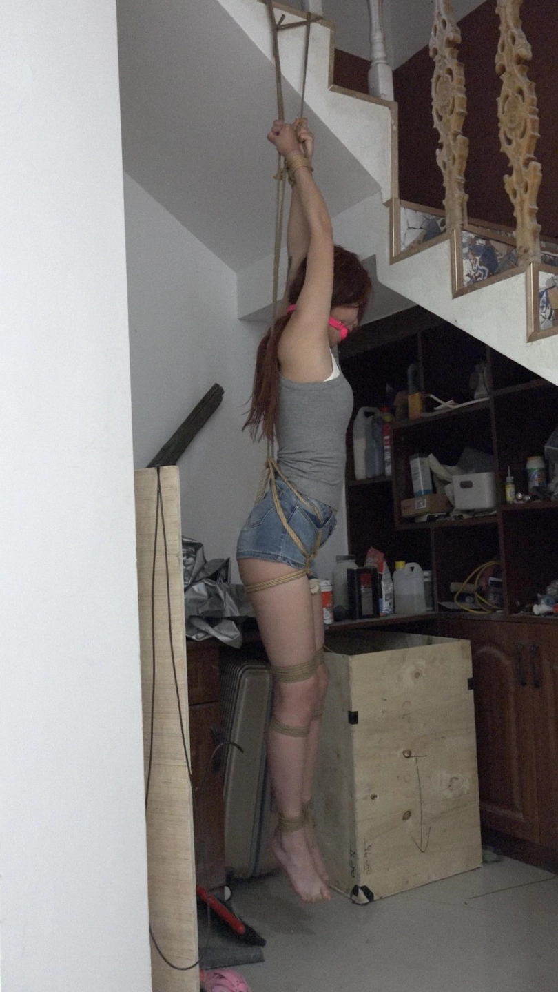 【子衿】菲菲吊绑双脚离地快绑哭了超大口球口水打湿衣服镣铐肘铐跪罚