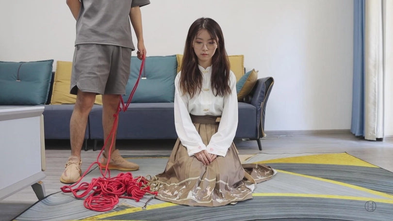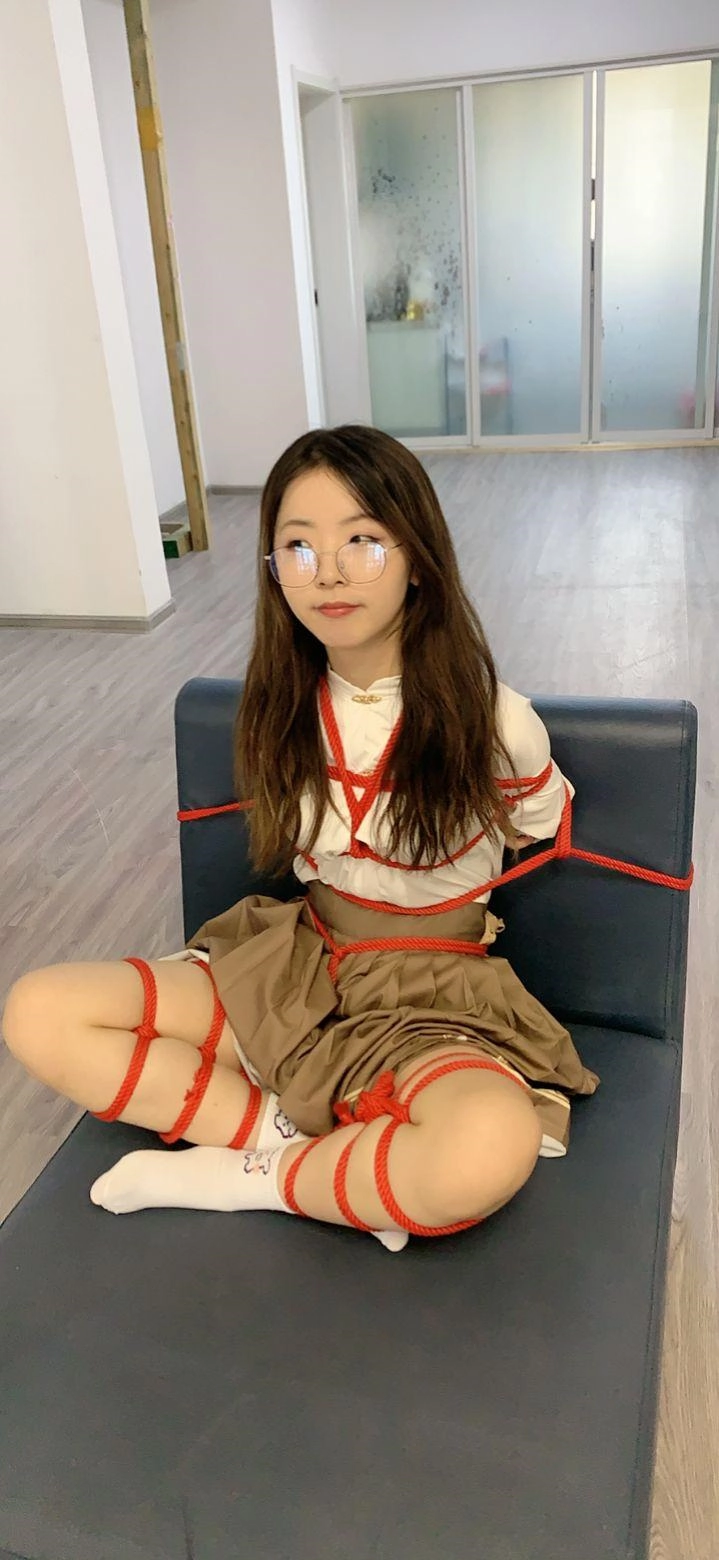 第二项淑女训练则是无论何时都能维持稳重的耐力,为此,先生请小姐自行脱掉鞋袜,小姐意会到了先生的目的,便十分自觉的将刚脱掉带有微微汗味的白棉袜塞进嘴里,而后被绳子绑成了驷马。