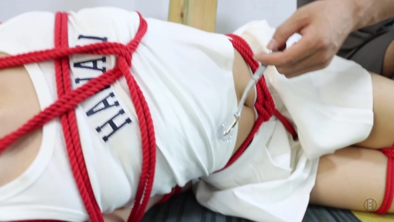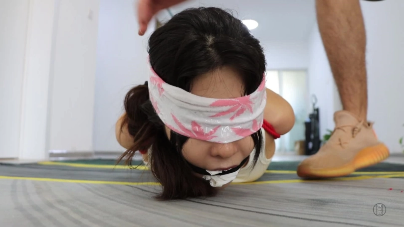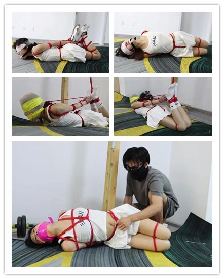 剧情介绍:米娅给舞蹈室老板发消息,想去跳舞,老板表面答应,背地里却想着好好敲诈米娅。镜头一转,米娅正在翩翩起舞,老板拿来水招呼米娅坐下,接着开始跟她推销办卡事宜,米娅绝对办卡并声称要报警抓老板:强买强卖。老板见软的不行就来硬的,二话不说把米娅反剪双手就要捆绑。米娅哪里是老板的对手,被欧式直臂缚加腿部蛇缚的驷马倒攒蹄捆绑结结实实捆绑在地上,她开始求饶:求你放了我,我把钱都给你,可老板不打算放过她,用白色内裤堵满她的嘴巴,接着用两条黑丝袜勒上,此时米娅呜呜呜(同好可以仔细听堵嘴声音)。接着老板又用粉白色麻叶袜子加透明胶带封上了她的眼睛,随后用脚将米娅踹了侧身后离开。米娅开始在地上挣扎并呜呜呜试图吐出嘴里的内裤呼救(此处挣扎和呜呜呜很棒)一会绳子没挣扎开,但吐出了嘴里的内裤开始呼救,但是没喊来人却喊来了老板,老板用手捂住她的嘴巴,又用一块厚白毛巾揉成团塞入她的嘴里,接着外面戴上口球,让米娅的嘴巴被撑大无法活动,接着解开封住她眼睛的麻叶袜子,表示她太不老实,得给她绑更加严实。镜头一转:米娅被侧身捆绑在柱子上,连头也被强制绑住动弹不得,老板老师用齿轮挠她脚心,腰,胸部拉她的股绳,还问她办不办卡?米娅难受呜呜含糊不清回答:没有钱(注意听能不能听出来。)口球堵嘴声音结束,接下来就是黄色厚麻叶袜子堵嘴(米娅的嘴容量很大,厚厚的大棉袜都能塞进去),堵嘴好后,橙色绷带缠绕封住,再紫色胶带缠绕。这样米娅声音更加含糊不清了(我是只能听到呜呜呜呜,基本分辨不出,大家可以分辨分辨。)堵好嘴巴后,老板用刚刚的方法加大攻势继续折磨,米娅挣扎并剧烈但也无济于事。最后还被老板捂晕,打算卖掉。镜头一转,米娅被驷马倒攒蹄强制抬头吊缚在柱子边上,老板用绿白色麻叶袜子堵住她嘴巴,银色胶带缠绕封住,黑色胶带缠绕封住眼睛,再套上肉色丝袜,然后黄色胶带封号嘴巴眼睛以固定肉色丝袜,捆绑堵嘴蒙眼套头结束后,老板在胶带上写下“出售”后离开,留米娅在地上挣扎并呜呜呜。