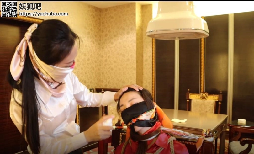 时间过去了一个月,美女A每天都这样被美女B调教,因为每天乙迷的原因,美女A渐渐的开始精神有了恍惚,这天美女B约了个买家上门,谈好了价格准备把美女A卖了,便再一次迷晕了美女A,用丝袜塞在了美女A嘴里,用黑色丝绸和红色丝绸蒙住了美女A的口鼻,用丝绸丝巾蒙住了美女A的眼睛,为美女A换了一套新的丝绸衬衣和黑丝还有丝绸包臂裙,把美女A用团缚捆绑着,美女B又再次用乙迷捂在了美女A被堵嘴的口鼻上便把他塞进了行李箱。这时买家也正好上门了,美女B拍拍行李箱,说道你以后要好好的哦,就把行李箱交到了买家手里,美女A之后的命运可能就和个人偶一样了。