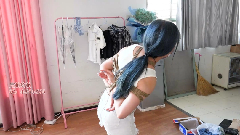 【子衿】抢劫女友美琦2-美琦被男友抢了钱,男友就出门花钱了,留下美琦独自绑在房间