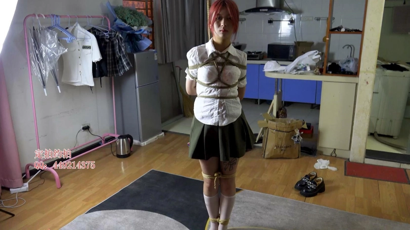 【子衿】高三生冰冰完美身材衬衣短裙日式吊绑第一次尝试口球口水,内衣花纹清晰可见,带上口球还要一直说话,不一会口水就流下来滴到胸上了,老实多了,第一次带口球说取下来之后嘴都麻了