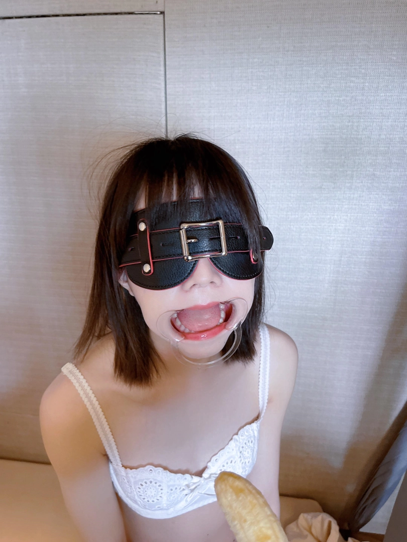 虐嘴部分:用医用一次性扩口器撑开小嘴进行羞耻的颜面破坏,尽情的用手指玩弄茶茶的小舌头。扩口器可以把嘴巴张开的很大,让我的手指能尽情在口腔内壁抠弄~邪恶的我甚至会故意把手指探进去触碰茶茶的嗓子眼~就算这样已经足够羞耻我也不打算放过茶茶,正好看到果盘里的小香蕉,顺手剥开香蕉[X_X]茶茶的小嘴里,逼迫茶茶带着扩口器吃香蕉~