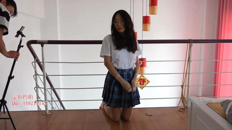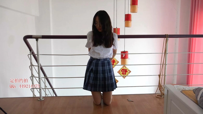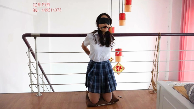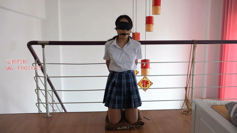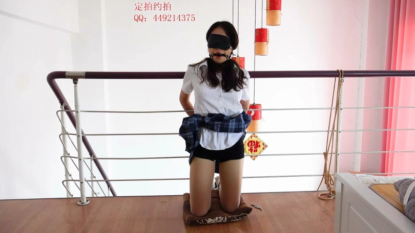 【子衿】妍如栏杆镣铐跪姿固定蒙眼口球撩裙子