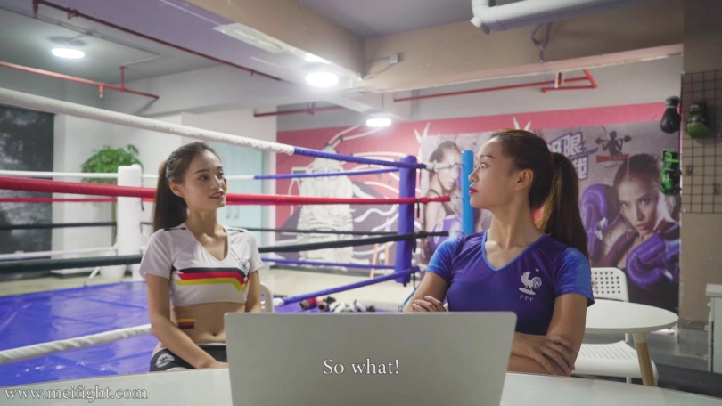 Ziyue and Ling were watching a football match. Their favorite teams were different, so they had an argument. They finally decided to have a boxing match to vent their dissatisfaction with each other.