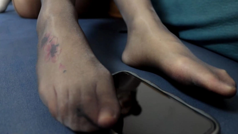 美女被全包脸部只露眼睛,手部也被完全包裹成球,非常戳个人的嗨点,并且加上了诱人的灰丝油光丝袜,可爱的猫耳朵,美女当然努力逃走,结果却发现拘束越来越严密~