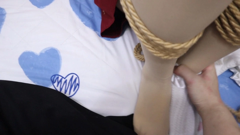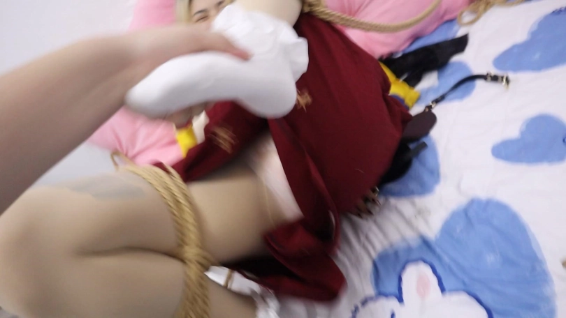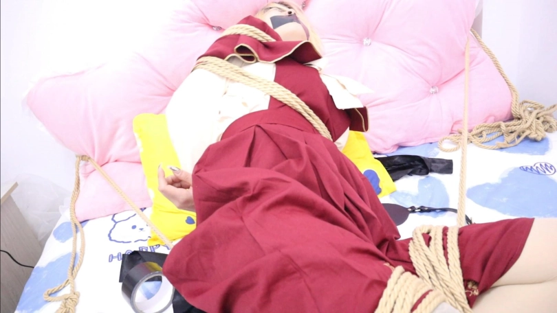 【荷约】黄头发红裙白靴子少女的痛苦绳缚磨难,被超紧的固定在床上捆绑封嘴,不断地呜咽,并被坏人玩弄并强行脱下白靴子玩弄敏感美足