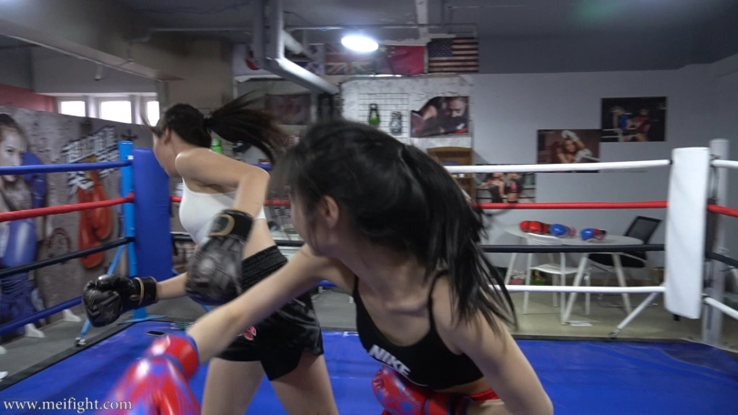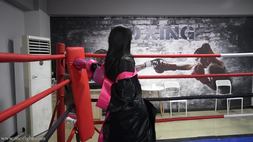Both Zhoumo and Wanqin were new to boxing. They didn‘t have much game experience, but their self-confidence was innate. It was a long match, a test of their physical strength. They defused each other‘s attacks with a lot of body to body clinching....