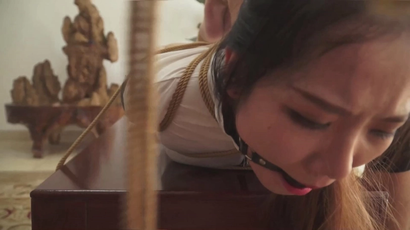 此时,白富美拼命的挣扎和大叫,还发出含糊的说话声,似乎想说什么。