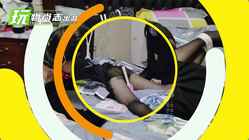 最终妹妹获胜 将姐姐大字形捆在床上 板子 拍子对着姐姐一顿招呼