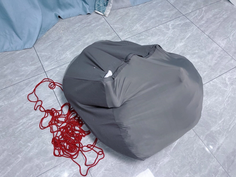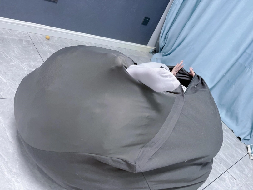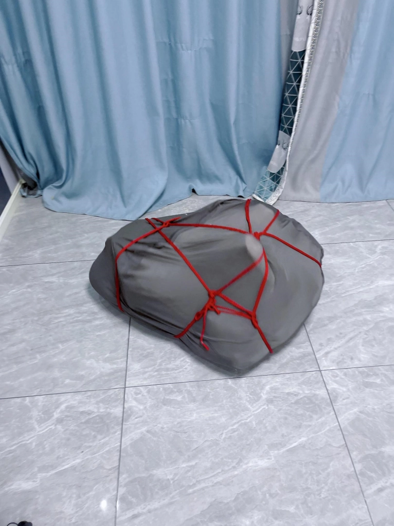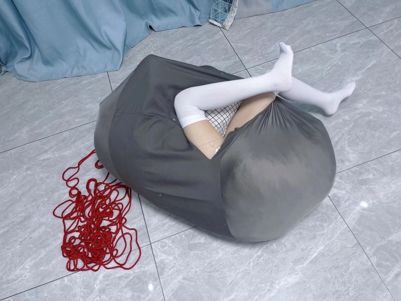内容:把茶茶双手绑好后,用三床被子卷起来包裹好塞进懒人沙发套里,然后用绳子捆扎。命令茶茶自行脱出。茶茶需要从三层棉被里钻出来后再从沙发袋里破带而出。