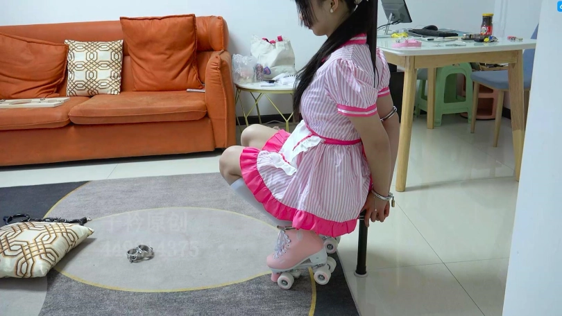 【子衿】琳琳镣铐轮滑鞋白丝袜TK挠痒折磨 连体镣铐 手铐脚镣 木枷 五花紧缚 室外滑冰 驷马水晶口球口水