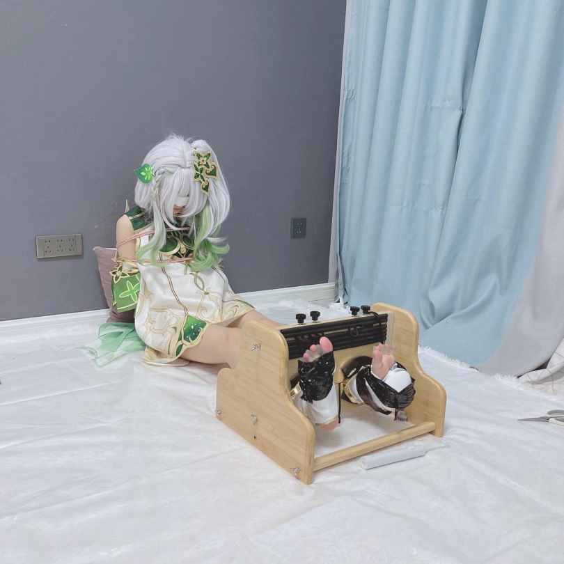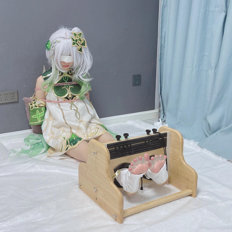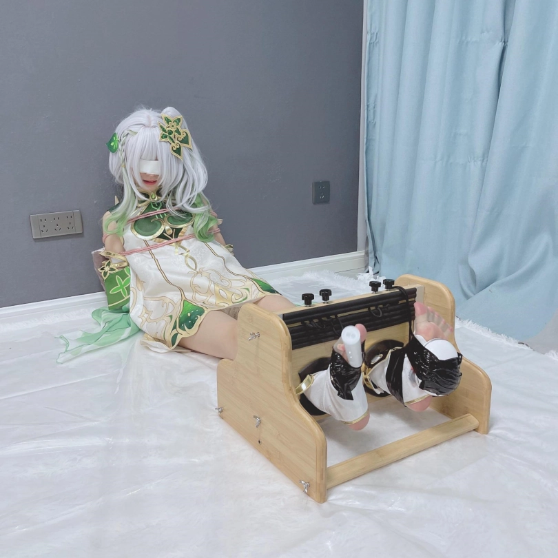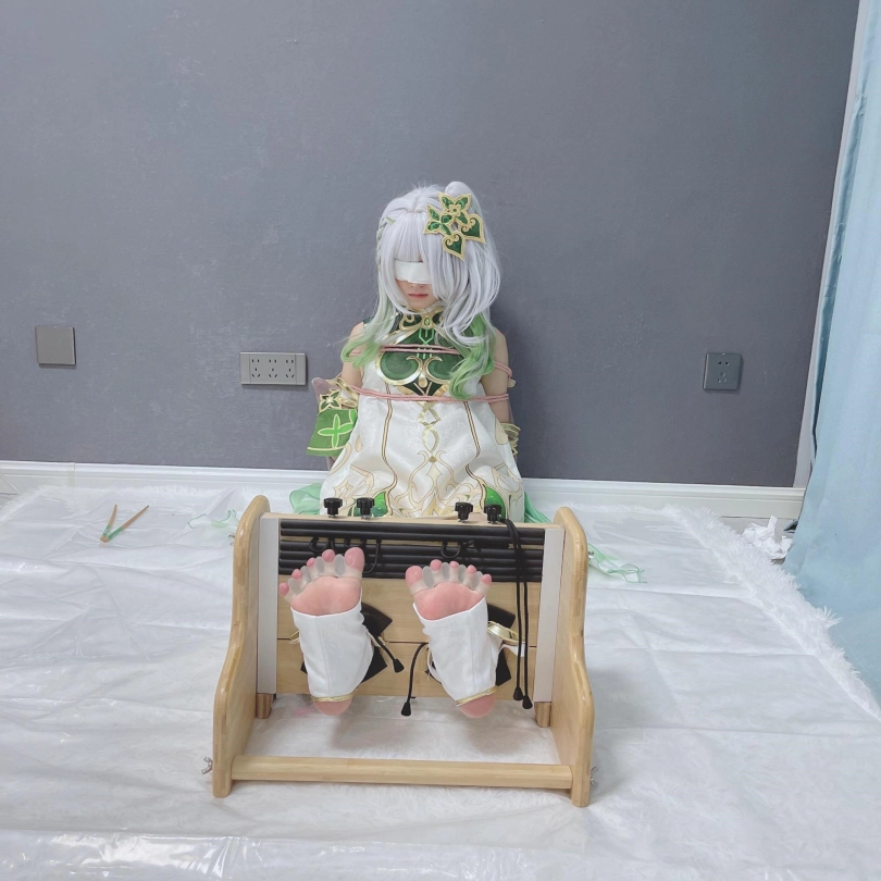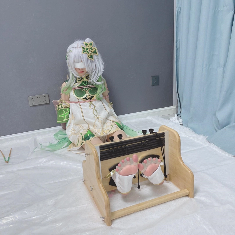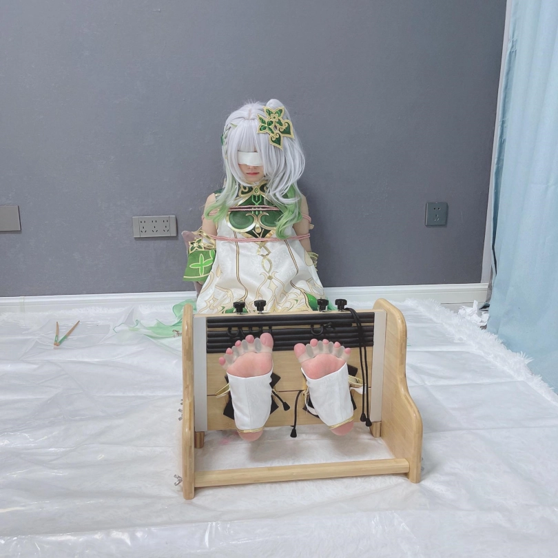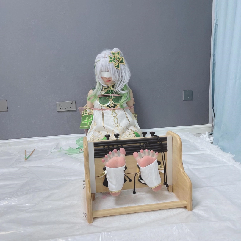 小草神醒来,发现自己被紧紧绑住,一双白嫩可爱的小脚丫也被死死卡在足枷里牢牢锁住,动弹不得。