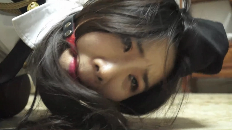 美女被绳子加固折叠捆绑起来,堵嘴换成赛口球。
