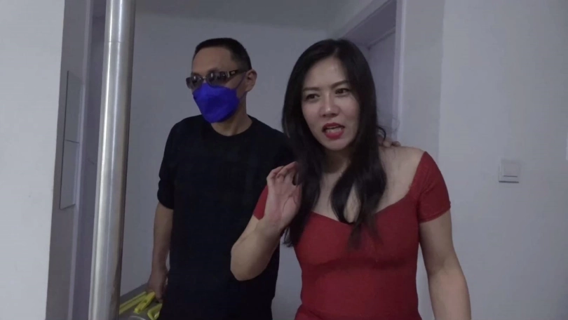 李然老公锁哥回来,手里拿着黑色塑料袋,和二女打招呼后与李然一起进卧室,锁哥手里塑料袋里装着绳索、口球、胶带等束缚工具,李然笑着跟丈夫说待会好好招待吴晗关琳琳两位美女。