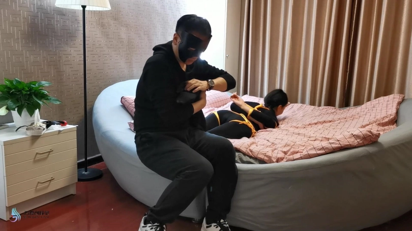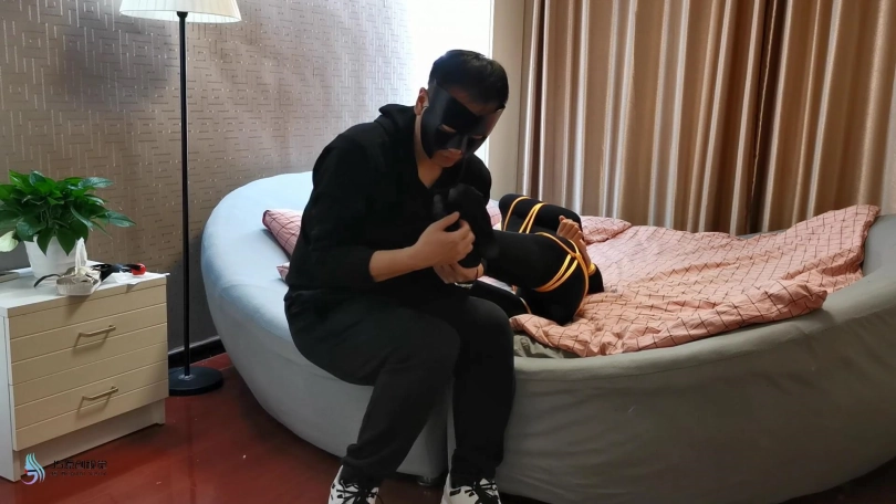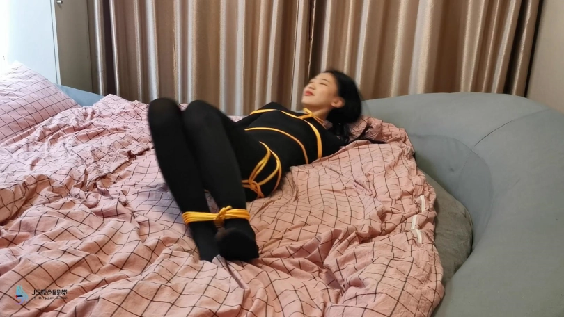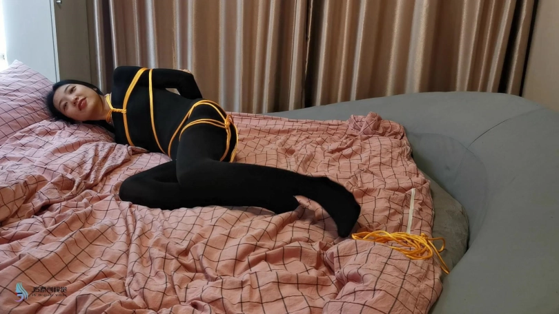 【JS】媛媛 黑色丝袜连体衣 金色丝绳捆绑挠痒