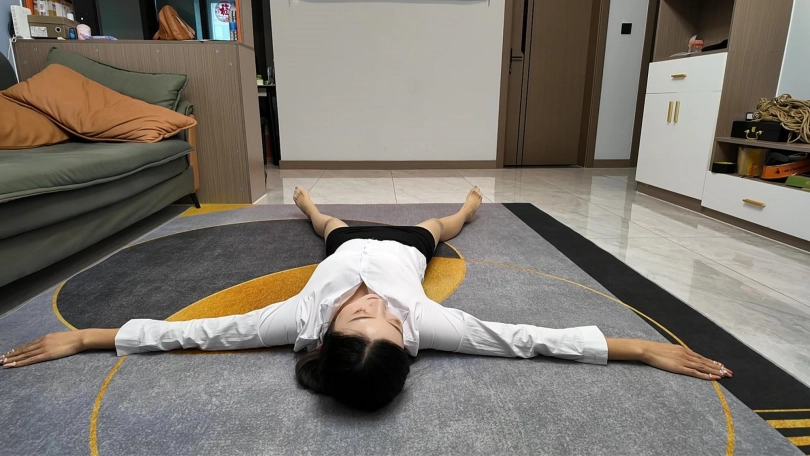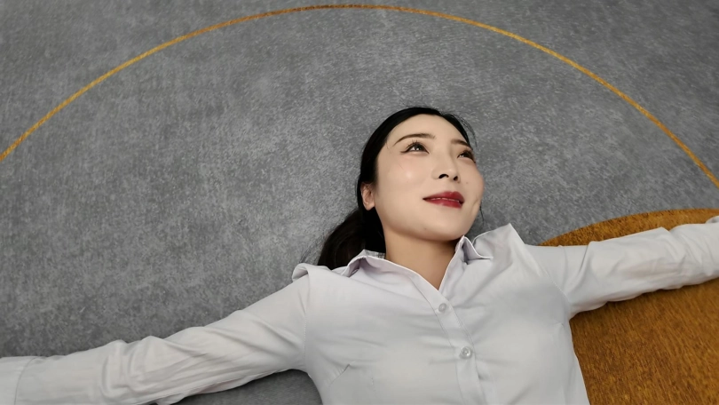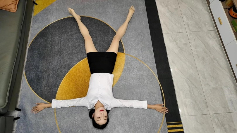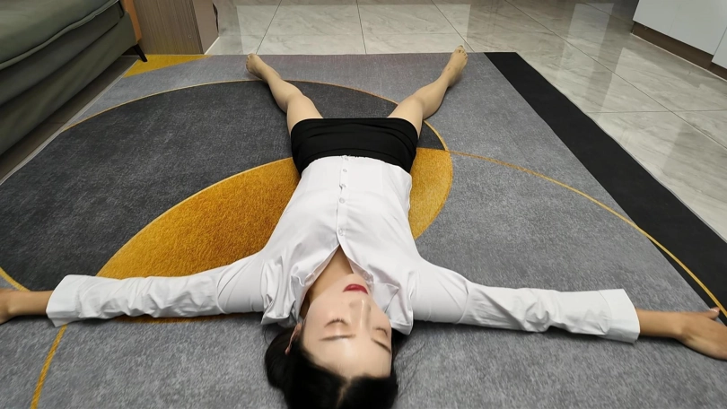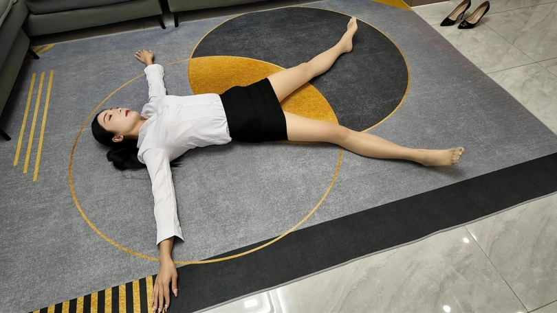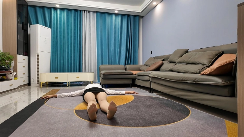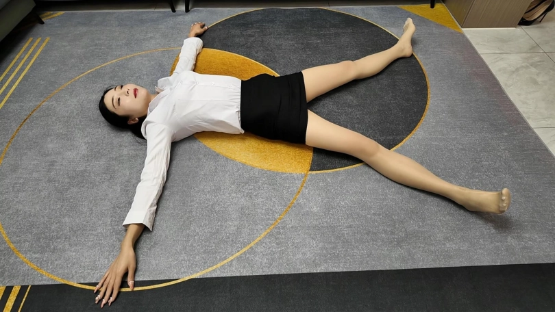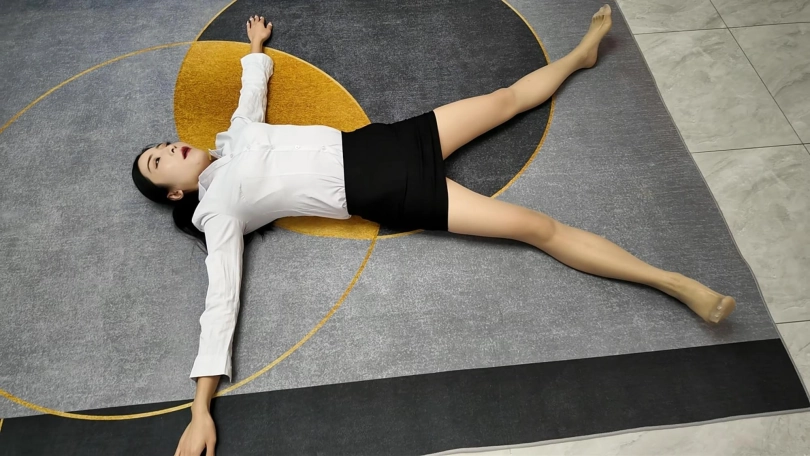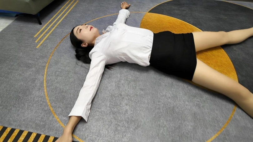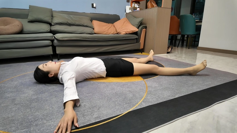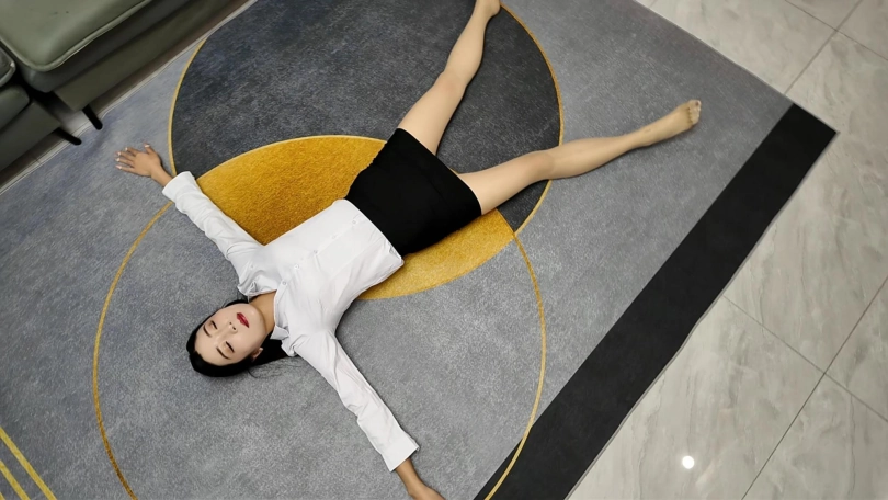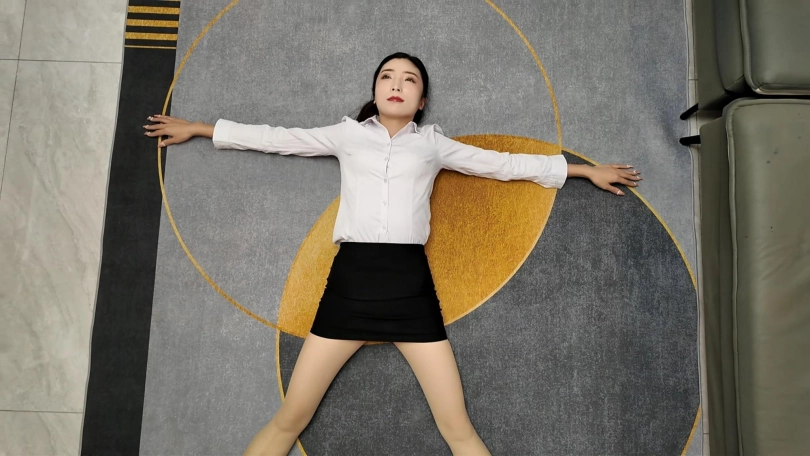 白领佳佳下班实在是太累了,直接躺到地上,大字躺,嘴角露出不经意的微笑,过来一会就站起来走了两步,又躺下,完完全全的大字各种展现