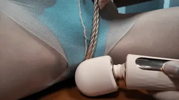 十一跪着被男友后手直臂捆绑,绑上股上,脚趾也用细绳绑上,丝袜勒嘴,坐着那根棍子拨弄,接下来捆绑到刑椅上面,麻绳勒颈,又用麻绳勒着嘴巴,脚趾还用细绳捆绑固定,一阵抚摸过后拿出棒棒,在震动的效果折磨下,十一终于顶不住了,下面湿了一大片。