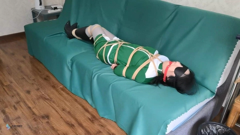 女孩的双臂被一股神秘力量向背后扭曲。接下来更多的绳子将她手臂和身体束缚。女孩想起身离开,但她的脚部也被绳子缠绕在一起。现在,女孩的全身都被很多绳子紧紧的束缚着。她在沙发上用力挣扎,但这只能更快的消耗她的体能。看,又有一条绳子缠绕着一只口球,慢慢的将向女孩的嘴巴移动。当画面再次亮起时。女孩的嘴里被塞进了口球,眼睛也被蒙着。全身被绳子紧紧的束缚着。她只能非常无助的在沙发上挣扎着。。。